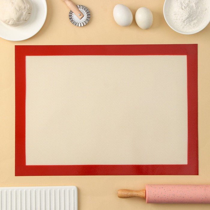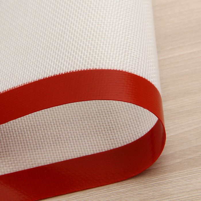 Коврик армированный цвет бежевый, изготовлен из пищевого силикона и усилен изнутри частицами стекловолокна. Он прослужит дольше обычного коврика, т. к. выдерживает высокую и низкую температуру.