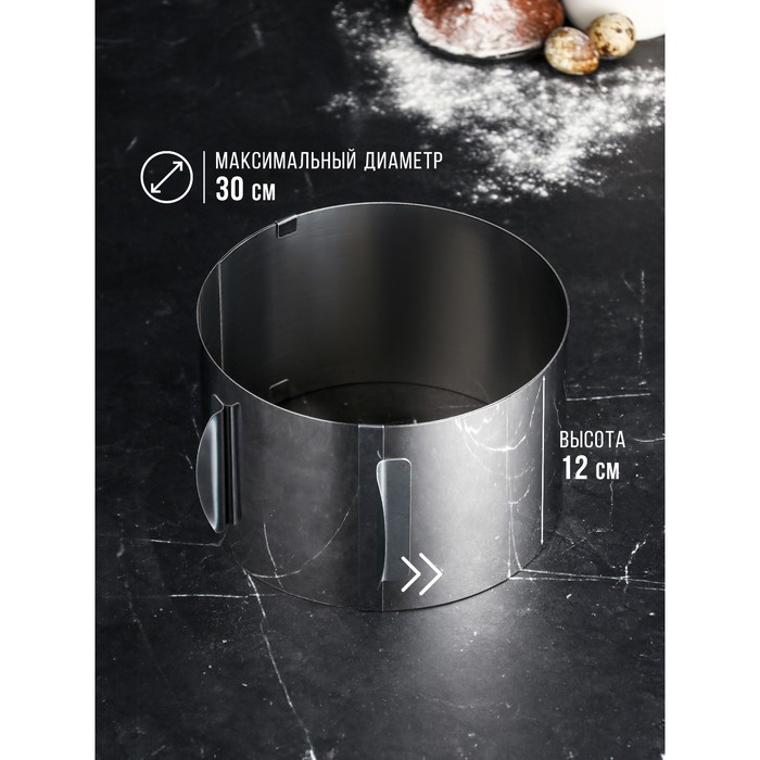 Форма разъёмная для выпечки кексов и тортов с регулировкой размера 16-30 см, цвет хромированный.