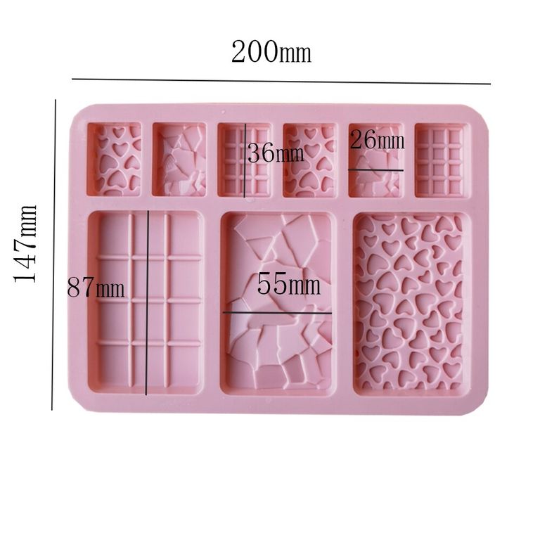 Силиконовая форма состоит из 9 ячеек (3 больших ячеек и 6 маленьких). Формы исполнены рисунками сердечки, осколки и классические дольки. Отлично подойдет для презента в виде шоколадного набора, а так же можно использовать в виде кондитерского декора для вашего кулинарного шедевра. Силиконовая форма подходит для заливки шоколада, глазури. Можно использовать для охлаждения и замораживания фигуры. Содержимое не прилипает к стенкам изделия, что без труда позволяет изъять изделие из формы.