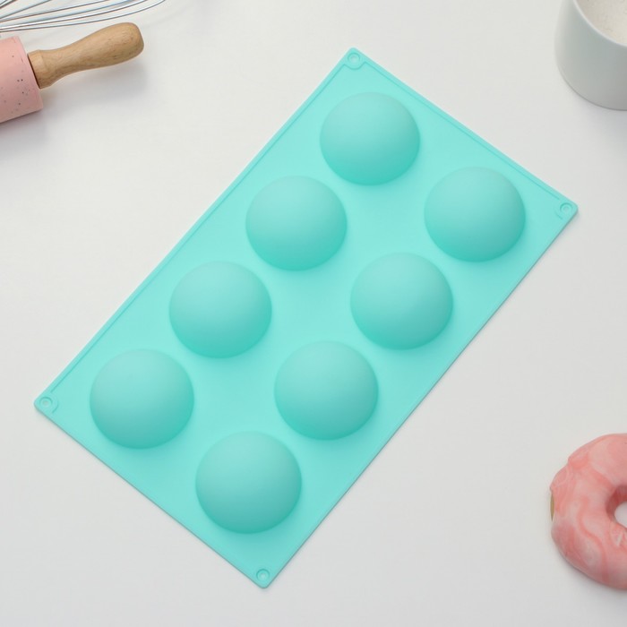 Форма выполнена в виде полусферы, 8 ячеек диаметром 5 см. Силиконовые формы универсальный инструмент для копирования объекта. Использовать форму можно как для выпечки, так и охлаждения и замораживания кондитерских изделий. Форму можно растянуть, сложить пополам или даже вывернуть наизнанку, если вам так удобнее вынимать изделия. Силиконовая форма проста в уходе. После выпечки достаточно слегка провести губкой по ее внутренней поверхности, чтобы удалить любые следы загрязнений. Для более тщательного ухода разрешено использовать средства для мытья посуды без включения абразивных частиц. При правильной эксплуатации прослужат не один год, форму можно мыть как вручную, так и в посудомоечной машине.
