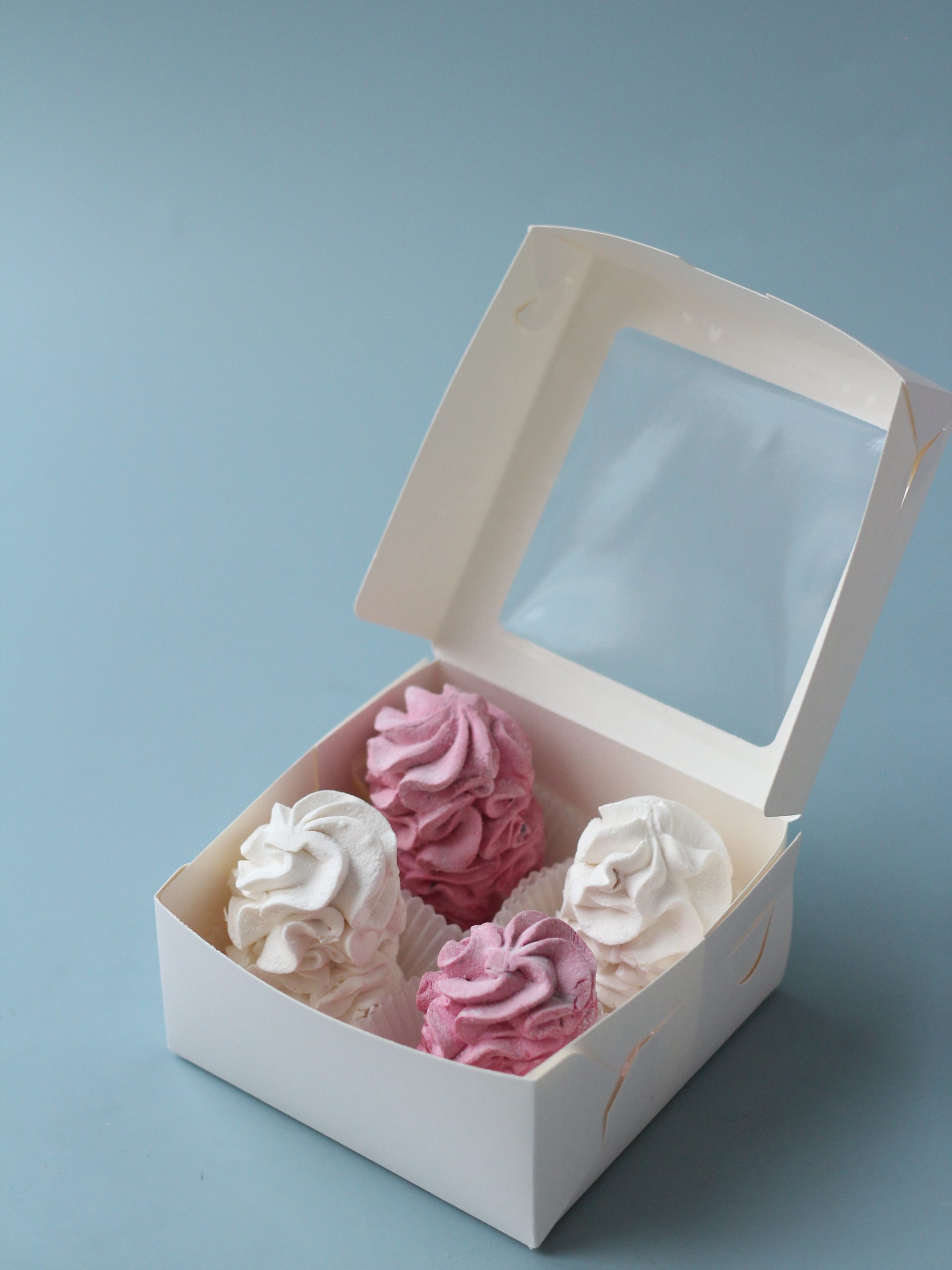 Коробка с вклеенным окном для 4 моти с ложементами. Подходит для моти, зефира, клубники в шоколаде, картошки, безе.