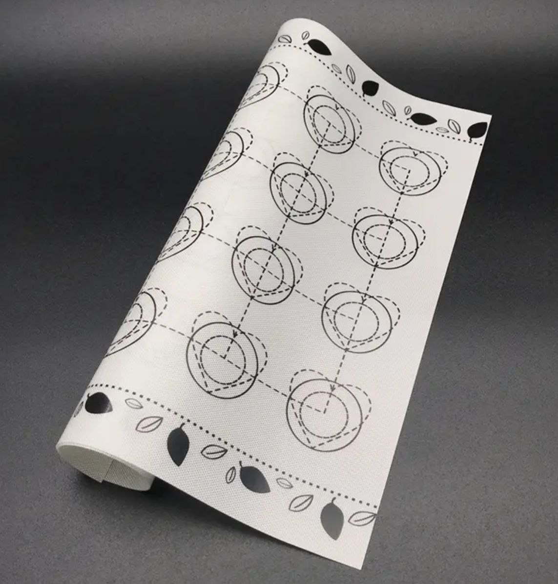 Коврик армированный цвет бежевый, изготовлен из пищевого силикона и усилен изнутри частицами стекловолокна. Он прослужит дольше обычного коврика, т. к. выдерживает высокую и низкую температуру.