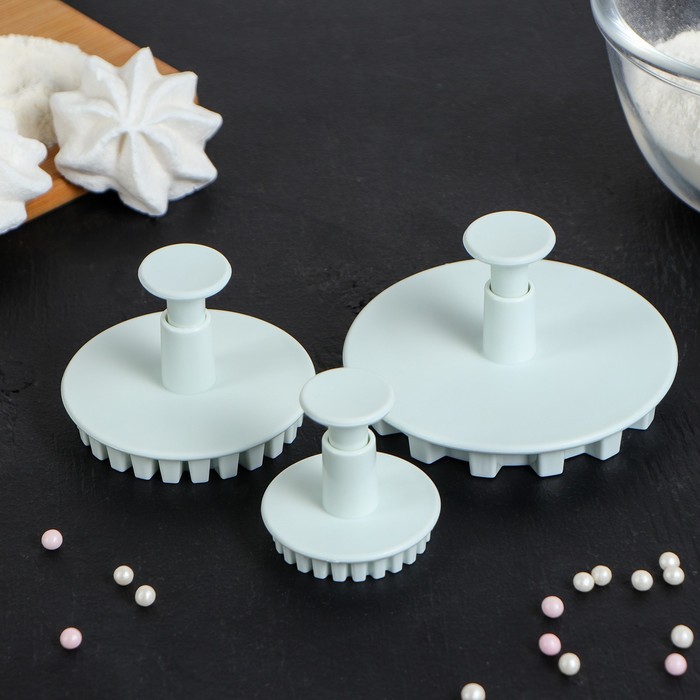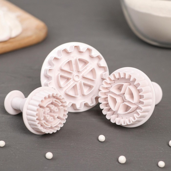 Плунжеры Шестеренки изготовлены из прочного пластика, который прослужит очень долго. Снабжены ручкой и пружиной для выталкивания. Используется для изготовления декора из мастики. Вырубка очень удобна в использовании, позволит быстро украсить любое кондитерское изделие. Благодаря безопасному материалу и простой конструкции, работать с вырубкой могут даже дети.