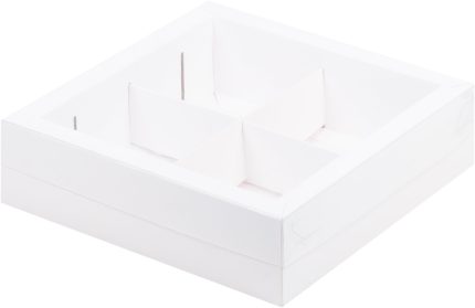 Коробка АССОРТИ на 4/6 ячеек с пластиковой крышкой, белая, размер 20*20*5,5 см