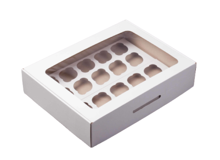 Коробка на 4 капкейка с окном, белая, размер 16*16*10 см