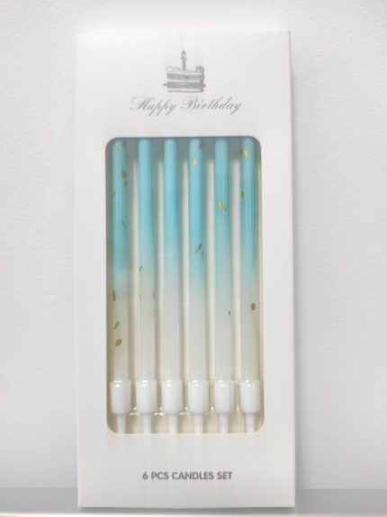Набор свечей Голубой/белый с золотом, 6 штук