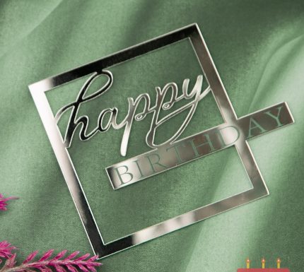 Надпись из акрила боковая Happy Birthday, в серебряной квадратной рамке