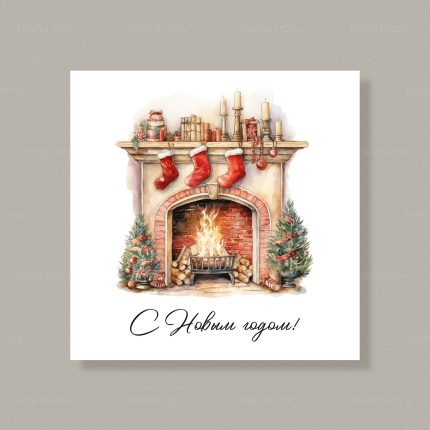 Карточки В121 С новым годом (Камин), 7,5*7,5 см, 10 шт