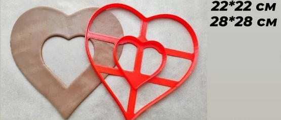 Вырубка Сердце двойное выполнена из качественного пластика поэтому безопасна для контактирования с кондитерскими изделиями. Данная вырубка хорошо подходит для сахарной мастики и мучных изделий как например пряники и печенья. Вырубка проста и удобна в использовании благодаря горизонтальным креплениям изделия.
